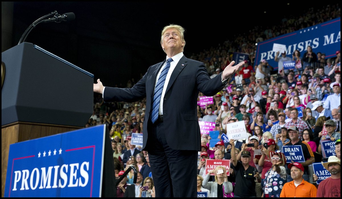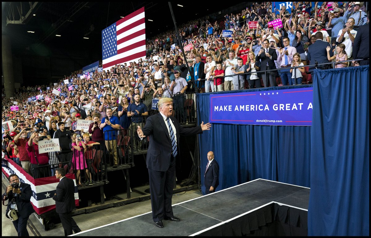 @realDonaldTrump looks to the crowd following his remarks as a "Make America Great Again Rally" in Evansville, INpic.twitter.com/2XFHnSrjR3