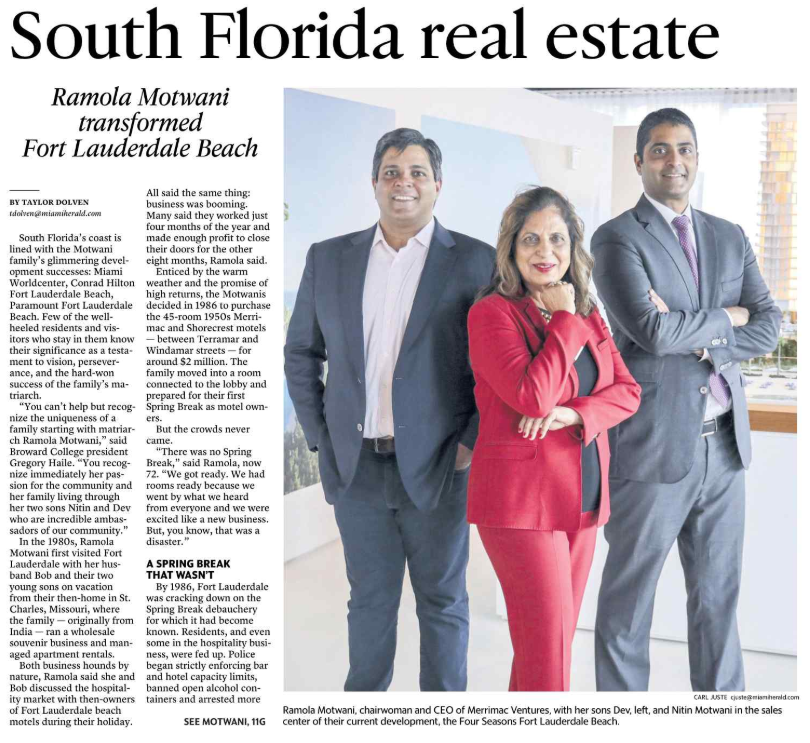 After three decades transforming Fort Lauderdale Beach from Spring Breaker hot spot to family-friendly luxury vacation site, the Motwanis are investing in the Broward College hospitality program to help train the next generation of the tourism workforce.https://hrld.us/2GLN6BE