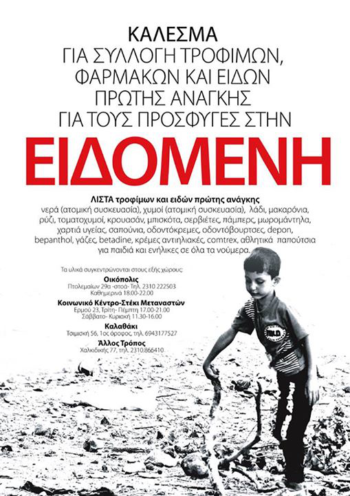 Θεσσαλονίκη Συλλογή τροφίμων, φαρμάκων και ειδών πρώτης ανάγκης για #refugeesGr #antireport https://www.kinimatorama.net/event/54886 pic.twitter.com/P9gjOwVFwB