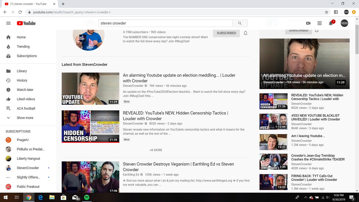 Literally none of your videos would come up before and now like you said it shows most recent. It still doesn't have your vids come up when I search "Steven Crowder change my mind".pic.twitter.com/8loDozP1XZ