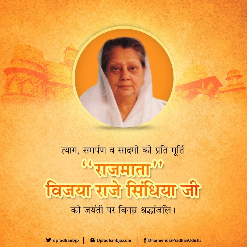 अपना सम्पूर्ण जीवन राष्ट्र सेवा को समर्पित करने वाली राजमाता विजया राजे सिंधिया जी की जयंती पर उन्हें शत् शत् नमन।।