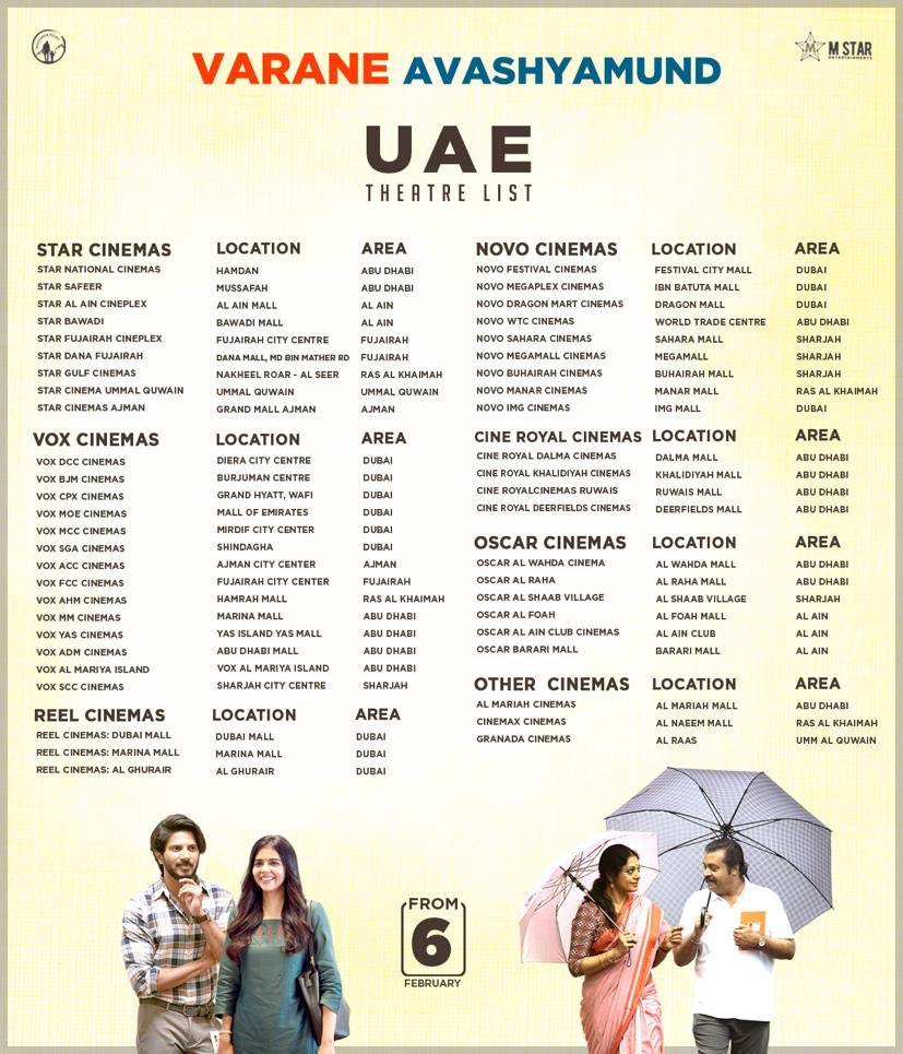 #VaraneAvashyamund Happy to be the gulf distribution partner for Varane Avashyamund.@DQsWayfarerFilm#MStarEntertainments@dulQuer@kalyanipriyan@GoldenCinemaGCC#VaraneAvashyamundFromFeb6pic.twitter.com/6TityoQQn0Hvala. Twitter će to iskoristiti za poboljšanje vaše vremenske crte. PoništiPoništi -