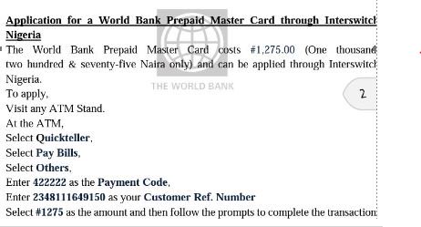 Fraud Alert: We’re not connected to any scheme titled ‘World Bank Prepaid Mastercard through Interswitch Nigeria’ Please beware!!pic.twitter.com/qsYyWBe2Co