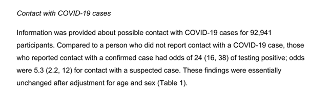 The strongest risk factor for a positive test – was contact with a positive case …. The odds ratio of 24. If your wife tests +ve on Monday you can be very confident your +ve on Wednesday is real …pic.twitter.com/wurSjnoghi