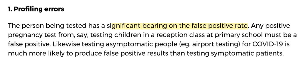 As the FPR is only based on the rate of false detection in the negative population. So “poor profiling” by selecting low prior probability (low suspicion) population does not raise the FPR - (I will come to what it DOES affect later)pic.twitter.com/ZVs02TsZ4Y