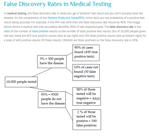 The FDR – rate of false positives amongst all positive tests; it’s a post-test probability. Unlike the False positive rate – it IS affected by underlying prevalence (bad "profiling") How does Clare’s case hold up now …pic.twitter.com/9xL58Cx2I0