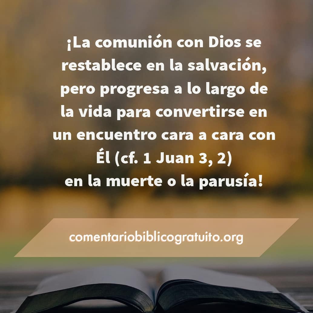 Fellowship with God is restored at salvation but progresses throughout life to become a face-to-face encounter with Him (cf. 1 John 3:2) at death or the Parousia! . . . . .