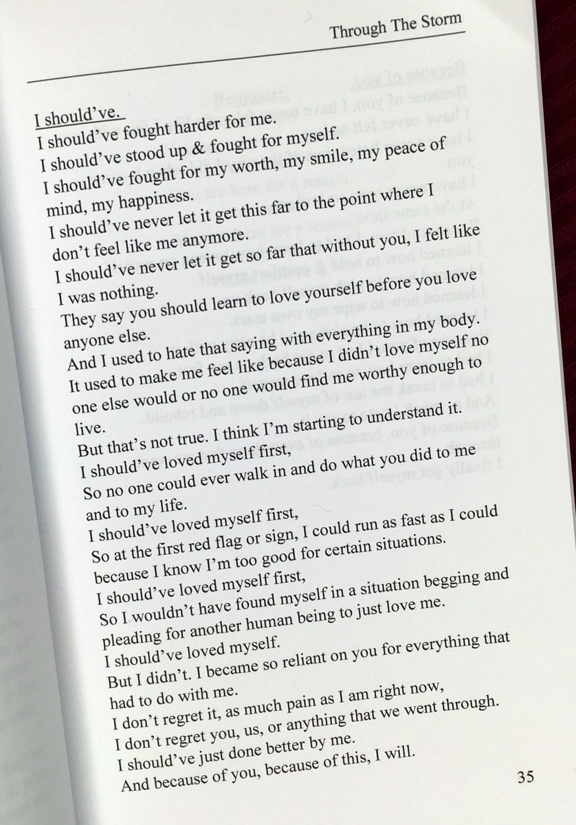 “I should’ve loved myself first, so no one could ever walk in and do what you did to me and to my life”