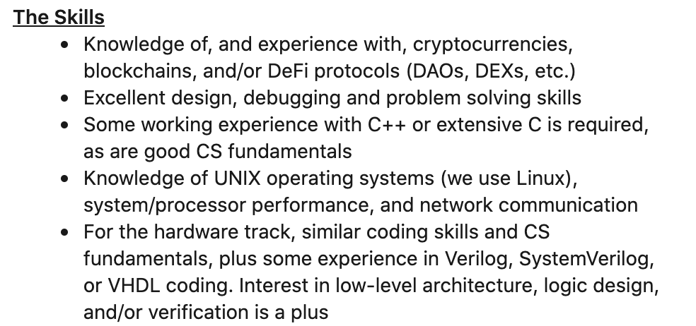 This job post by HRT is the first time I've seen hardware (System Verilog?!) in the same posting as a DAO/DEX ZK ASICs might be closer than you think, anonpic.twitter.com/YSnDFRXNZ7