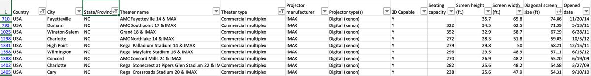 I wanted to know which IMAX was the best to see DUNE, so I scraped a theater db to see where I could get the best screening experience It turns out there's huge variance in screen size, IMAX's primary selling point! In fact, many are no larger than a standard theater #LieMAXpic.twitter.com/ye86ZCXWCf
