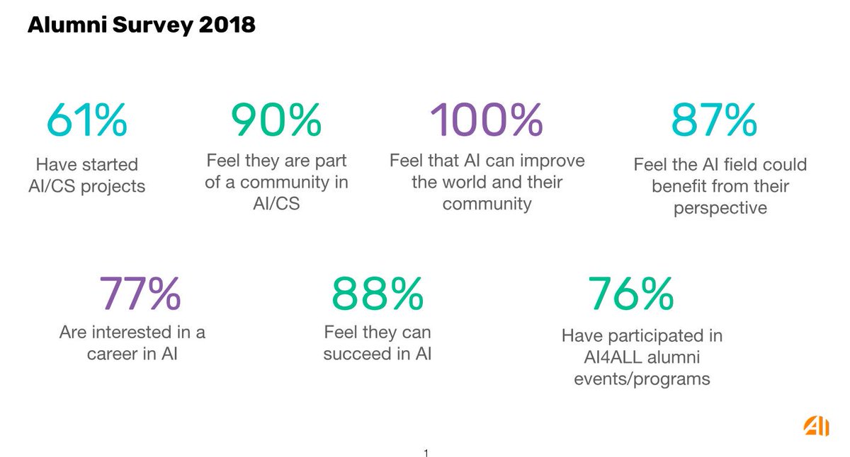 @ai4allorg alums believe that “AI can improve the world and their community” according to our survey. These teenagers are already making a difference worldwide through their research and community work in human-centered#AI approach. AI for Good is AI for All!pic.twitter.com/FA3T7NAuDM