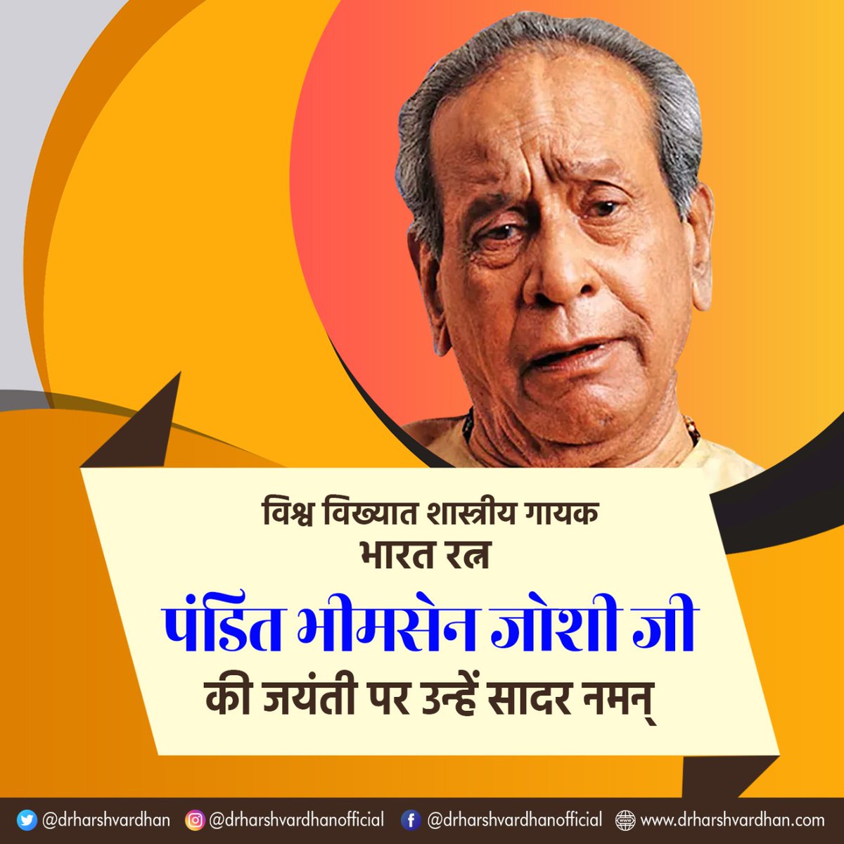 #पंडितभीमसेनजोशी जी की जयंती पर सादर नमन्।उनके गीत आज भी नव गायकों को संगीत की बारीकियों से परिचय करवाते हैं। शास्त्रीय संगीत जगत में आप हमेशा वन्दनीय रहेंगे।pic.twitter.com/OEq9kohjdS