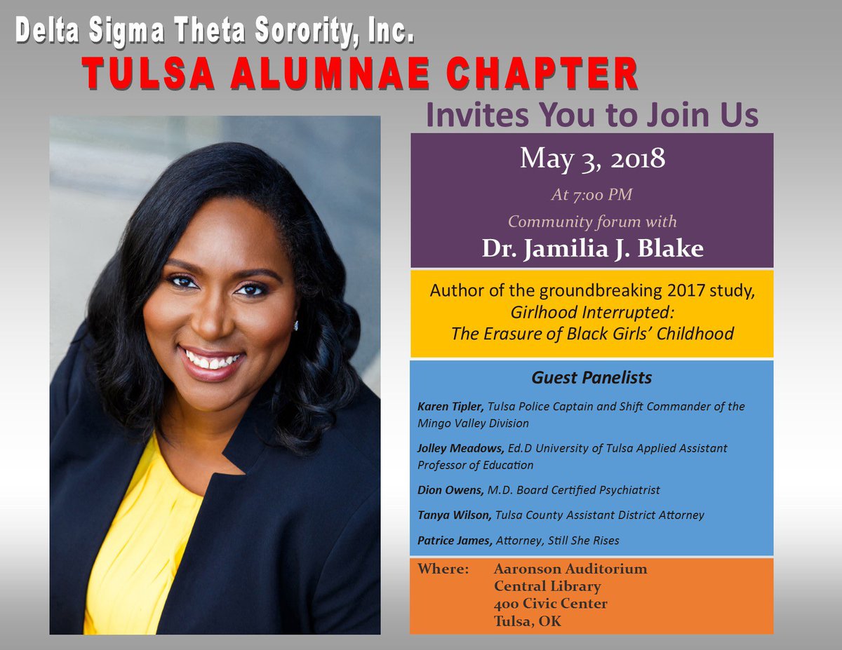 Looking forward to continuing conversation on the Adultification of Black girls in Tulsa, May 3rdpic.twitter.com/N5IWdflUsd
