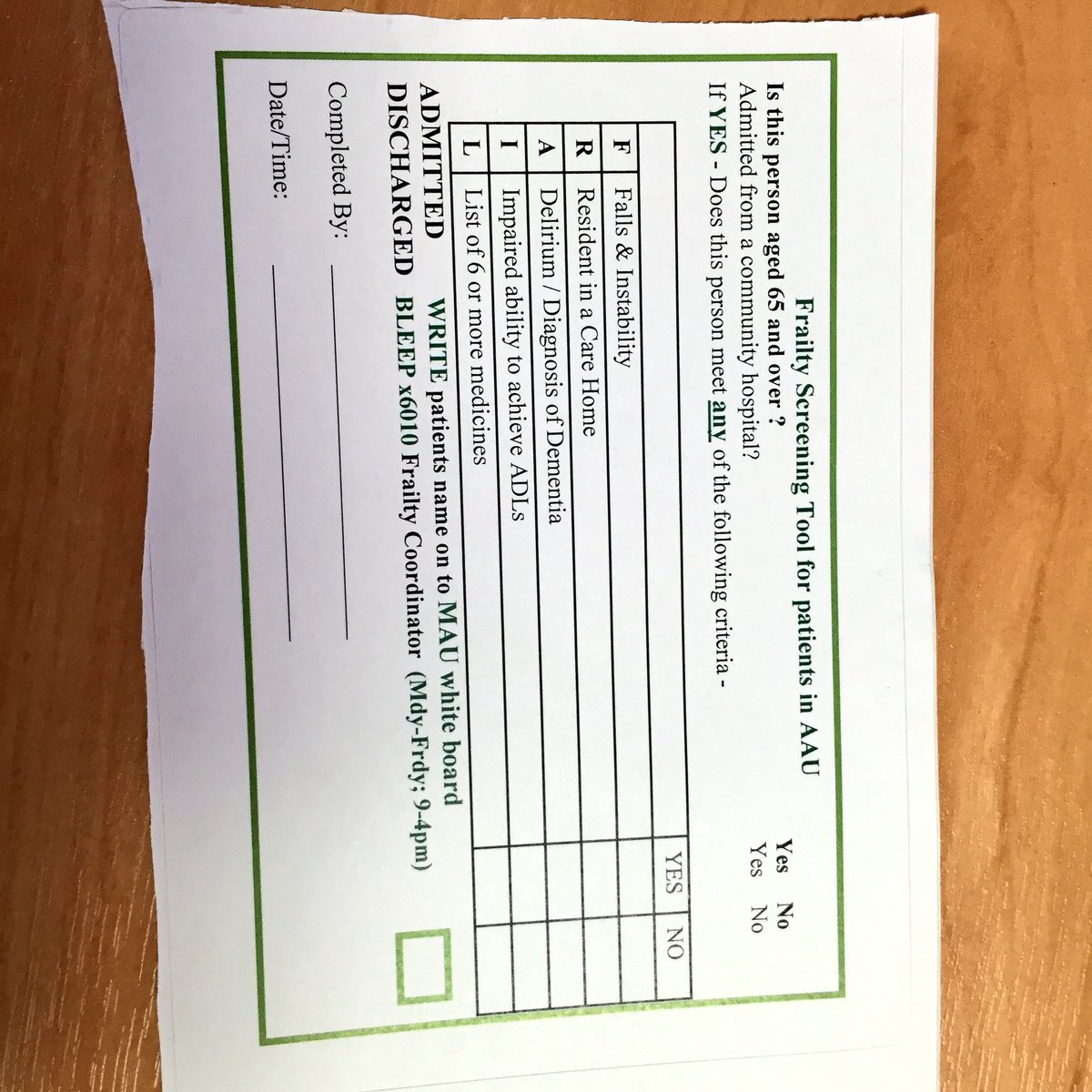Our nurses in MAU screen every patient over 65 for frailty at the point of admission.