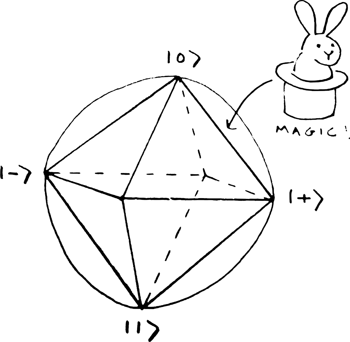 I drew a dodgy picture of the geometry of magic states in the Bloch sphere. The magic ones are outside the octahedron. The further you are from it, the more magic they are.pic.twitter.com/vz4nw273wL