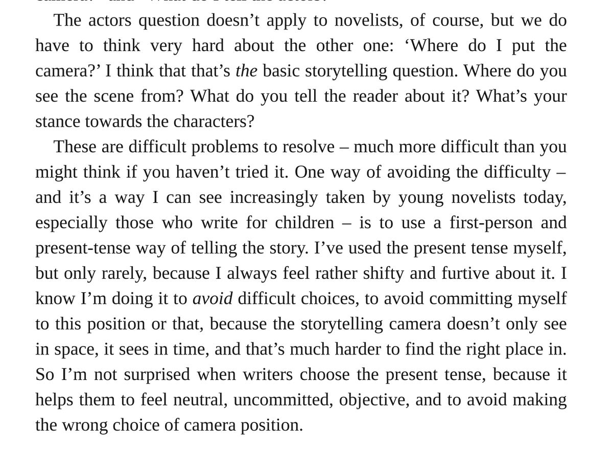 this is very close actually! i’m reminded of one of my favorite bits in the golden compass towards the beginning where the narrator talks about the history of lyra’s interactions with the other children - zooming back into the past in a way that the TV series had to skip over