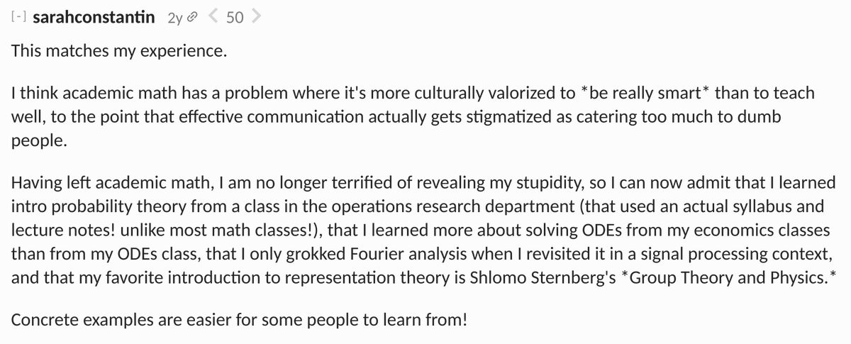 Anyone know anything good on sheaves in the spirit of @srconstantin's comment here? i.e. where I can pick up the absolute basics in the context of something practical like databases or constraint solvers or whatever? https://www.lesswrong.com/posts/JdvsMc2yvBzXgCrX7/the-math-learning-experiment#Kmth7TcvzFRebkfCe …pic.twitter.com/lt0VRCz3E7