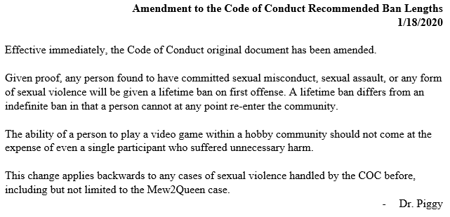 But it has become clear that the original outline is lacking. It was written anchored in a scene that allows attempted murders back in, that defends pedophilia and transphobia. The COC is going to advise bans based on player safety. Period. That's it. No more "middle ground."