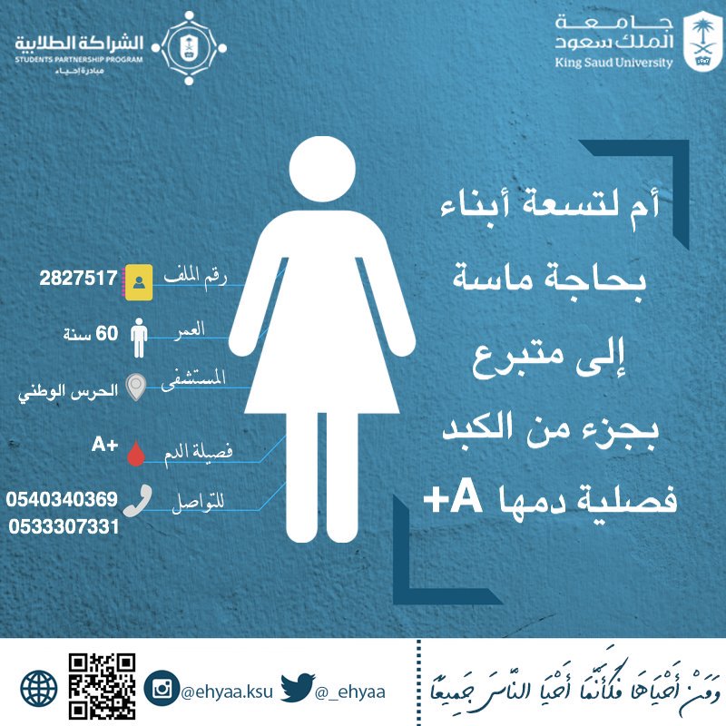 #مبادرة_إحياء#جامعة_الملك_سعود حالات جديدة بحاجة ماسة إلى متبرع بجزء من الكبد.pic.twitter.com/2touXrl7dA