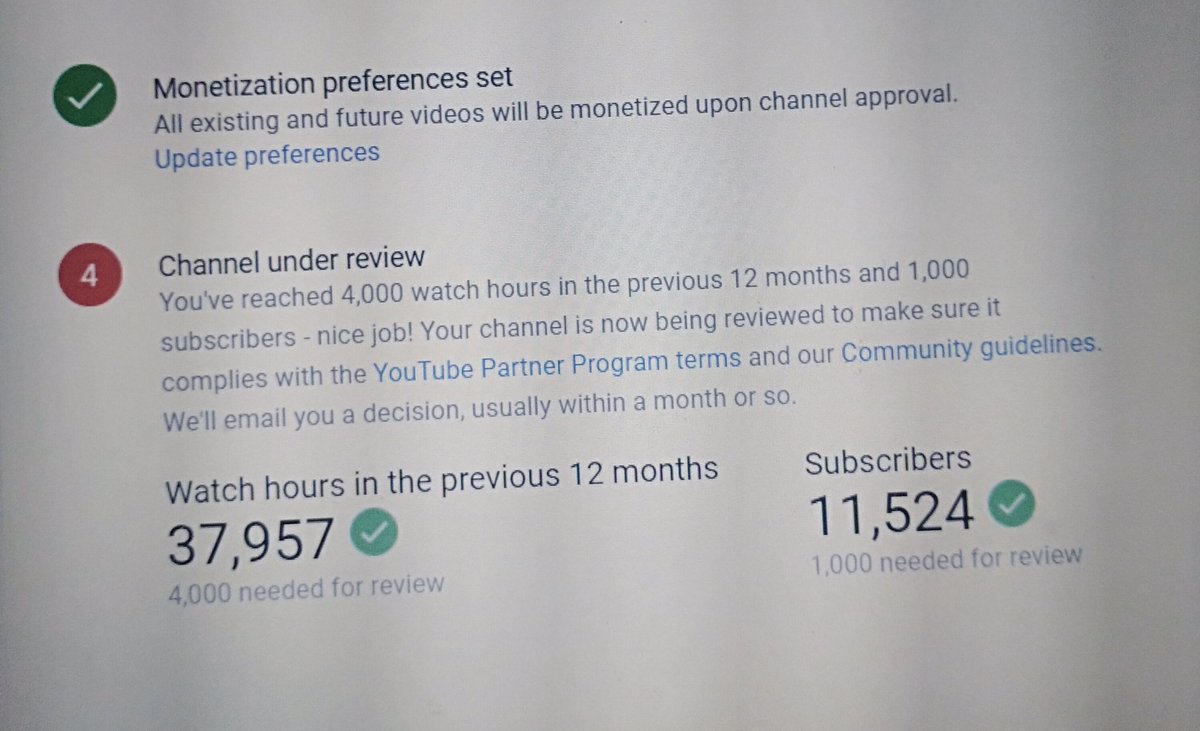 Dear @TeamYouTube despite my hard work & having subscribers of near 12K & view hours of 34,000 Hours,with no copyright issue,my channel is still not monetized....Its been long...Totally depressed & hypo energetic..... Please help to gain my energy back.... @TeamYouTubepic.twitter.com/0DxIttbXnQ