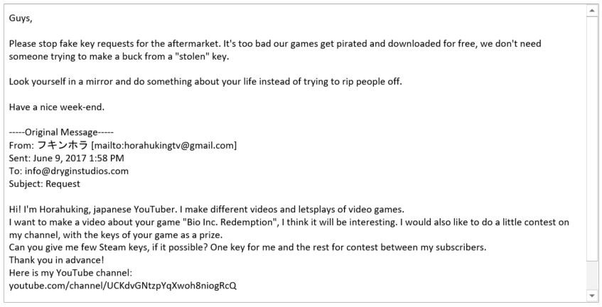 I was not aware that fake press key requests was such a big thing on Steam/PC. Got tired of it so I actually respond now.