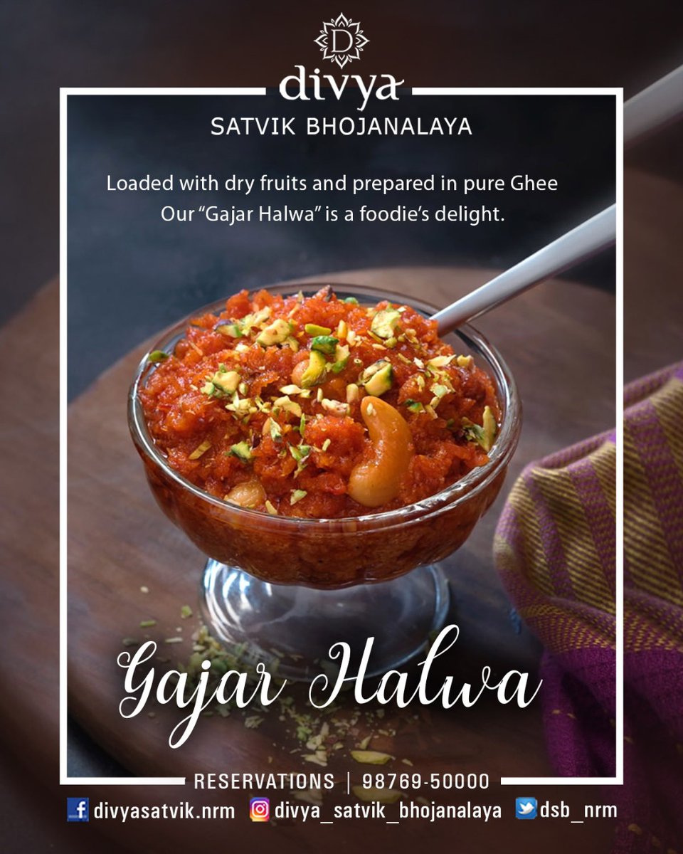 #gajar_halwa Loaded with dry fruits and and prepared in pure ghee, our#gajarhalwa is a foodie's delight. visit at Divya Satvik Bhojanalaya (best place at Nakodar Road, Nurmahal, Jalandhar.) Eat Healthy and Stay Healthy#gajarhalwa#gajrela#gajarkahalwa#Gulabjamun#Dessertspic.twitter.com/1KRqgPcuBi