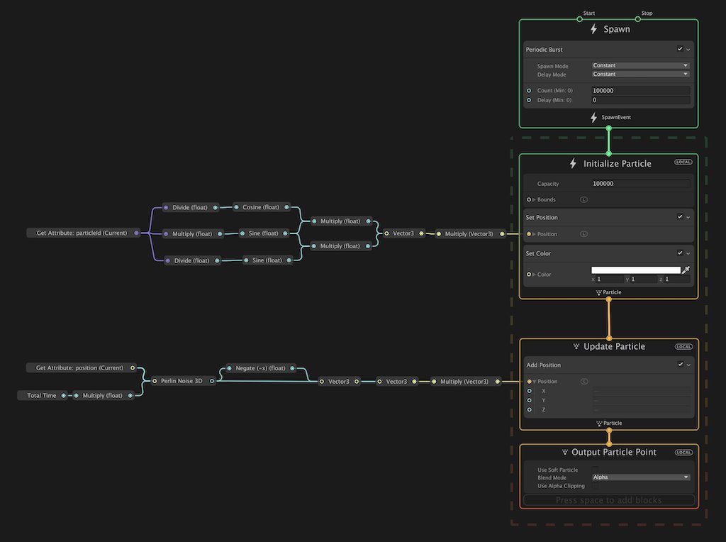 #つぶやきProcessing w=t=512;N=noise;p=[(cos(i)*sin(i*.16)*.4+.5,sin(i)*sin(i*.16)*.4+.5)for i in range(6**6)] def setup():size(w,w) def draw():global p,t;clear();p=[stroke(255,99)or point(x*w,y*w)or(x+(N(x,y+.002,t)-N(x,y,t)),y-(N(x+.002,y,t)-N(x,y,t)))for x,y in p];t+=.001pic.twitter.com/jvL9GJ3FBYPrikaži ovu nitHvala. Twitter će to iskoristiti za poboljšanje vaše vremenske crte. PoništiPoništi -