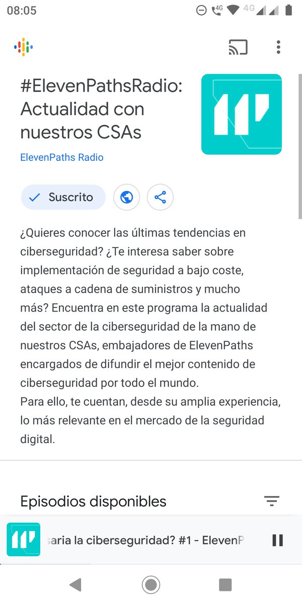 #GooglePodcast seguir nuestros#ElevenPathsRadio para que de una forma diferente vivir el mundo de la#ciberseguridadpic.twitter.com/iDLOWmxdw8
