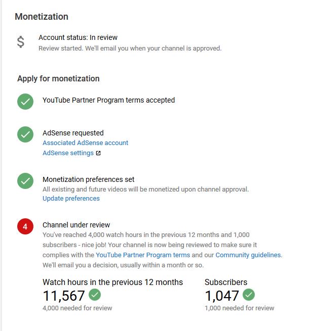 @TeamYouTube Dear Team . I have completed 1 k subscribers and 4 k watch time . Channel is under review for more than two monthspic.twitter.com/HBLYFZD9dB
