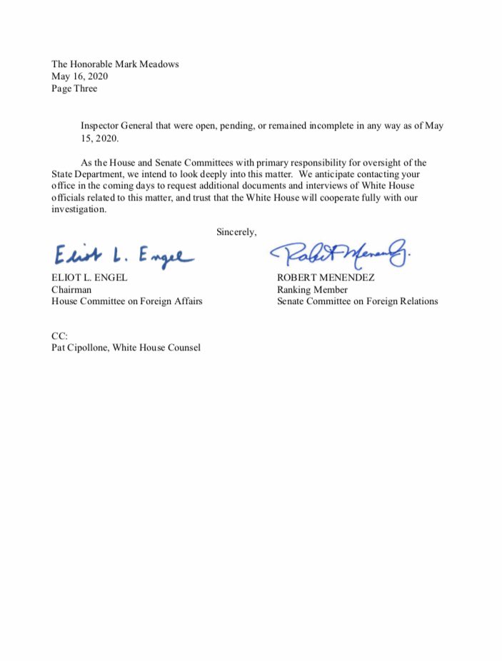Today I launched an investigation into President Trump’s firing of State Department Inspector General Steve Linick.