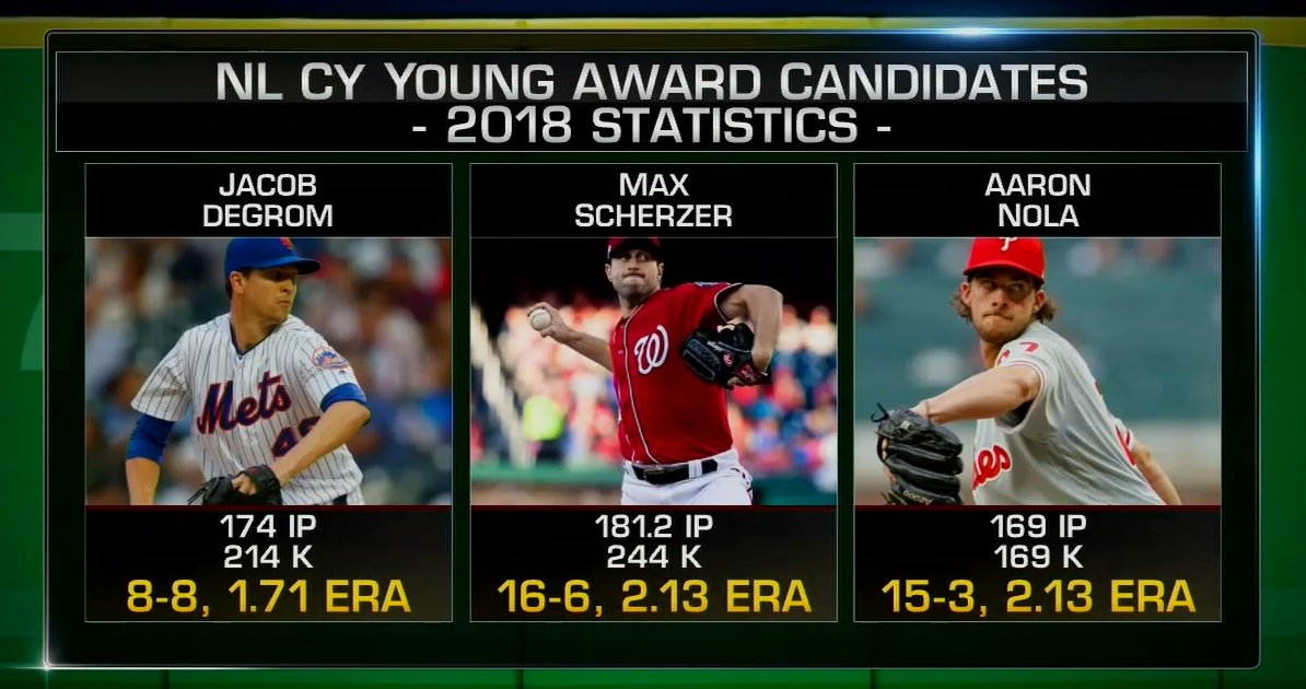 deGrom should win it but wont win it.https://twitter.com/MLBNetwork/status/1032823462245683200 …