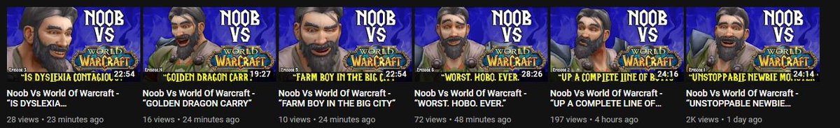 whelp. Whatever idiot halfassed BS going on with YouTube today - endless sodding “monkey” errors, has fucked up the scheduling for the WOW vids. Now they’re all up at once, Instead of a non spammy one a day.