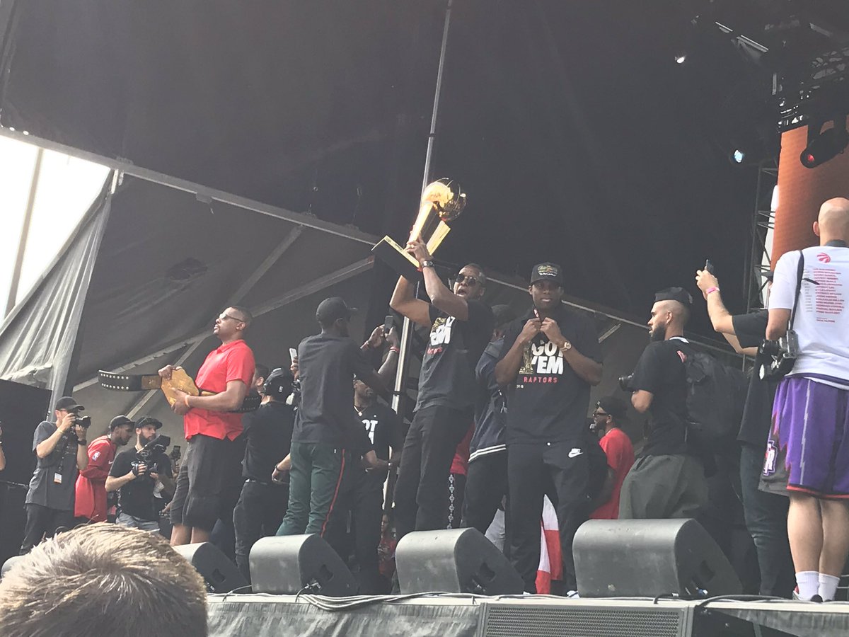 This was supposed to be my final tweet from the NPS, then my phone battery died: Masai Ujiri lofting up the trophy and being showered in Let’s Go Raptors chants and