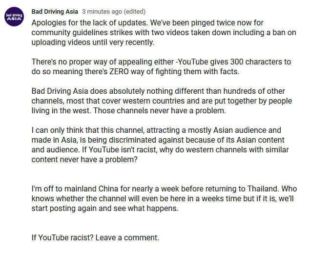 Given zero response when I've reached out, I can only think that @YouTube and @TeamYouTube is possibly racist as there's a clear double standard.pic.twitter.com/uTj2hdPYAb