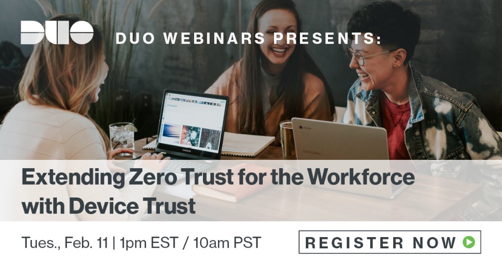 Join Product Marketing Manager Ganesh Umapathy for a webinar February 11 where you'll get the rundown on how Device Trust complements our existing