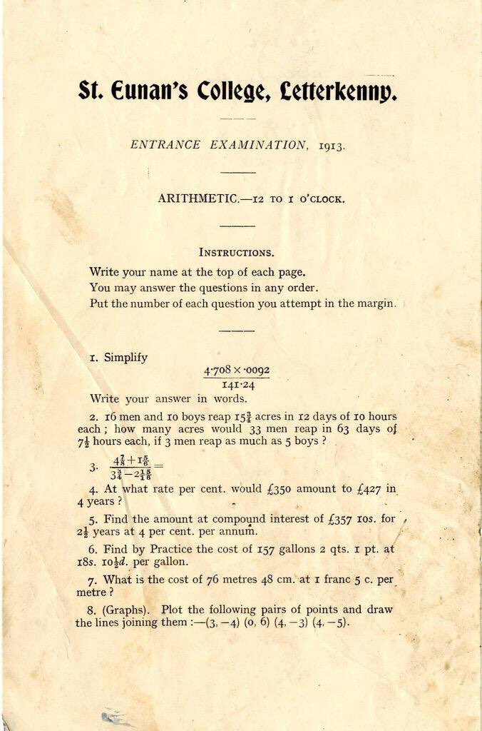 One of my favorite documents: entrance exam to a secondary school in the poorest part of Ireland in 1913.