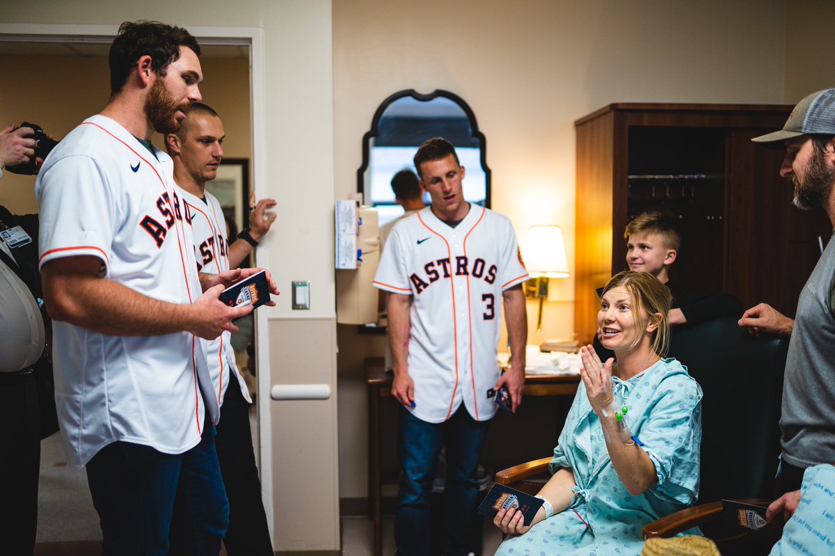 @TexasChildrens Cancer and Hematology Centers got the surprise of a lifetime when Houston@astros players José Altuve, Joe Biagini,@dusgar13 &@myles_straw, as well as@OrbitAstros, paid them a visit as part of the#AstrosCaravan!