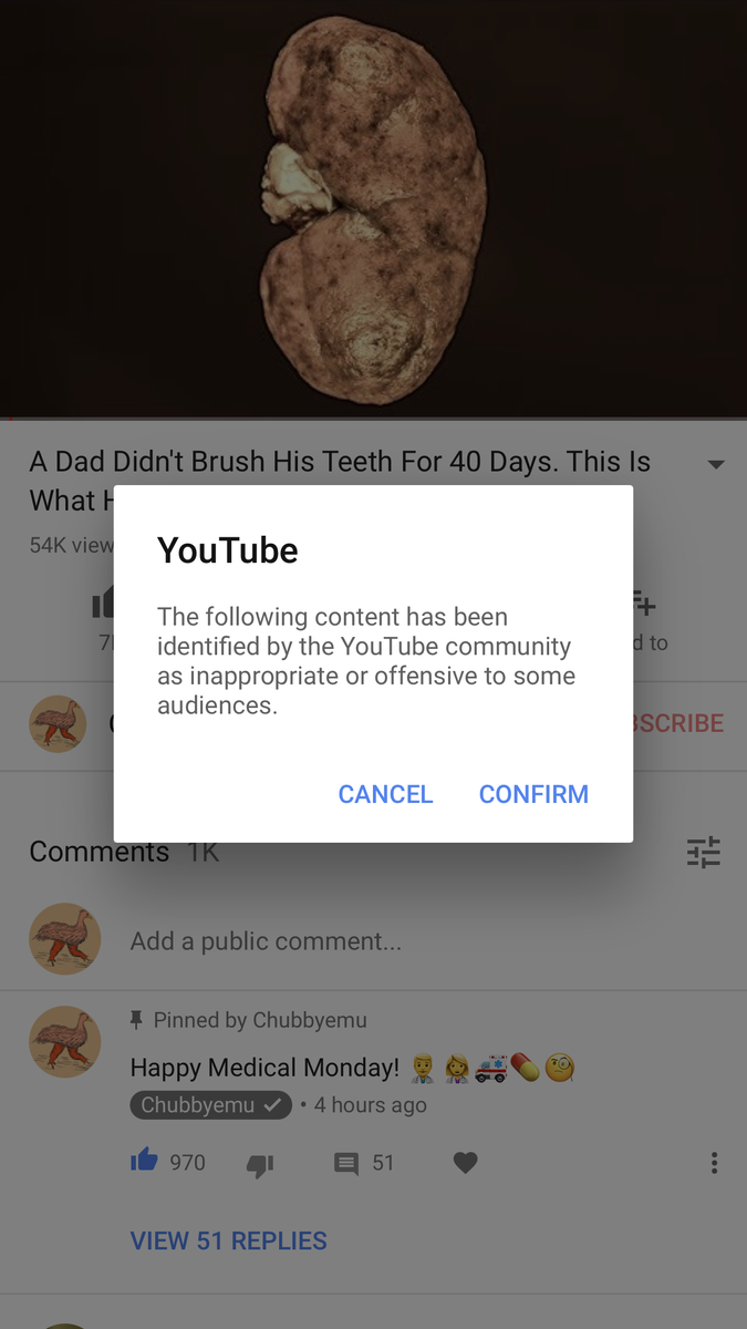 This is ridiculous, these medical videos are some of the cleanest most informative videos on the entire website. @TeamYouTube you need to intervene.https://twitter.com/chubbyemu/status/968278802701963264 …