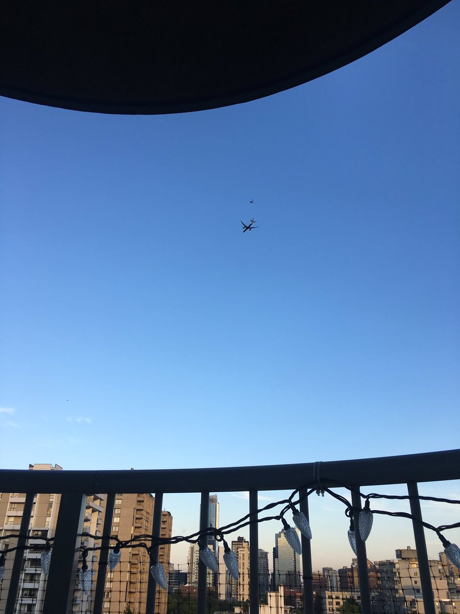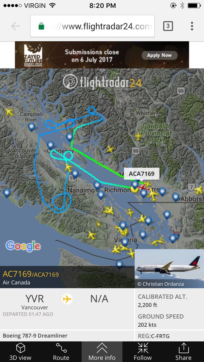 large plane just flew over my deck in Vancouver. it was very low and being escorted by a small jet. I *think* this was its odd flight path
