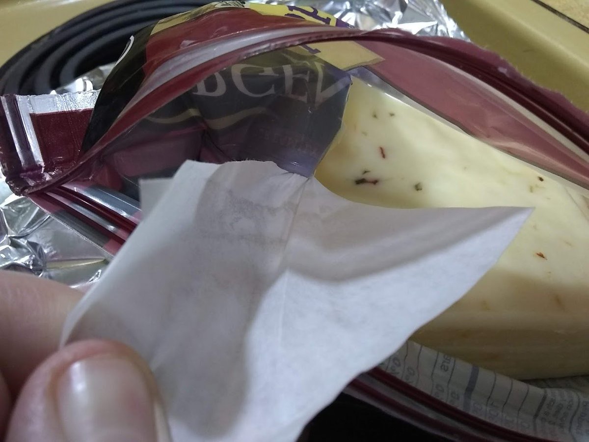 so you try to use your fingernails to open the seal, but that doesn't work, so you dry your hands again, and finally pull both sides open using paper towels in-between your fingers. Step 3: Pull out a slice of cheese, only to have the paper divider sealed with the packaging.
