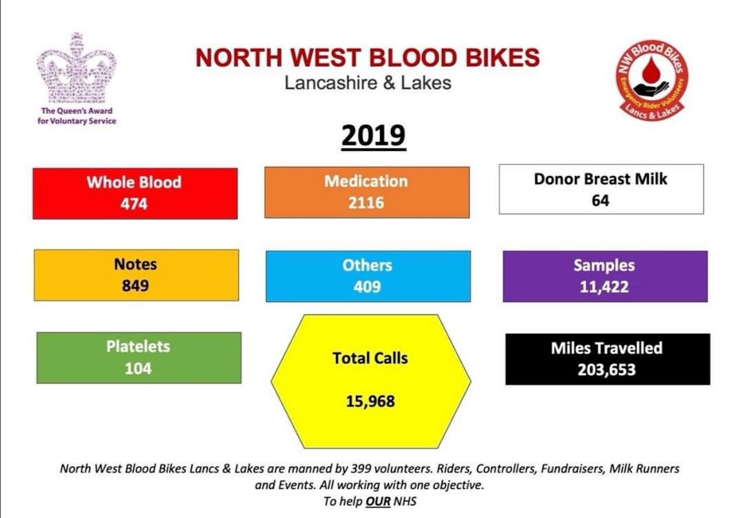 Look at the stats for last year!!! Incredible, and all done by volunteers, proud to be a Blood Biker and part of a great team.