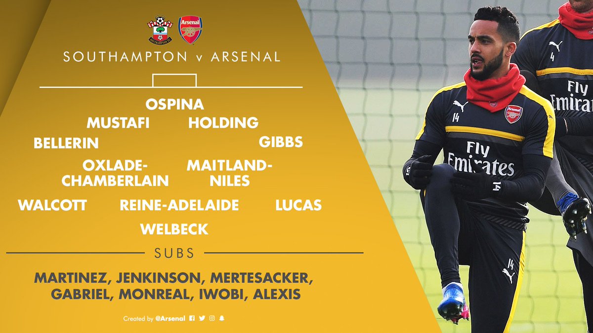 Susunan pemain Arsenal saat tandang melawan Southampton di babak 4