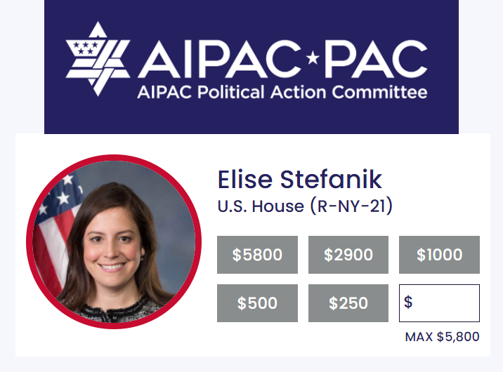 @AIPAC rescind their endorsement of Stefanik or will they continue to fundraise for her and others that are preaching the deadly Great Replacement Theory?pic.twitter.com/58aCHE6o3B