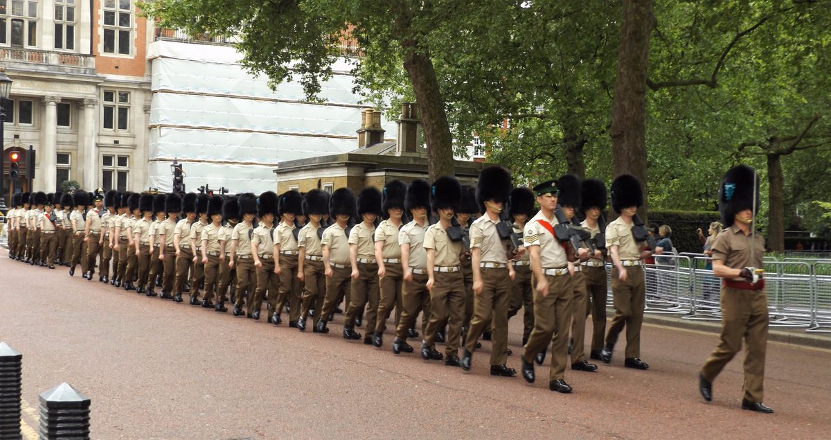 It's not all work for the these Irish Guardsmen, today they've been to the Queens garden party.