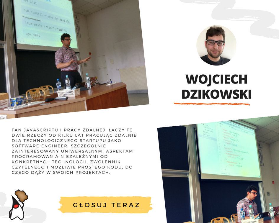 @DzikowskiW) to kolejny kandydat w konkursie na Prelegenta Roku 2016. Głosujemy tutaj -> http://bit.ly/Prelegent-Roku-2016 …pic.twitter.com/F9DvBaZiLj