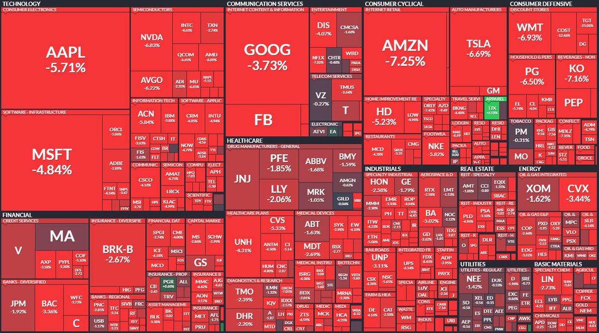 - Nasdaq -4.73% • S&P 500 -3.95% • Dow Jones -3.57%