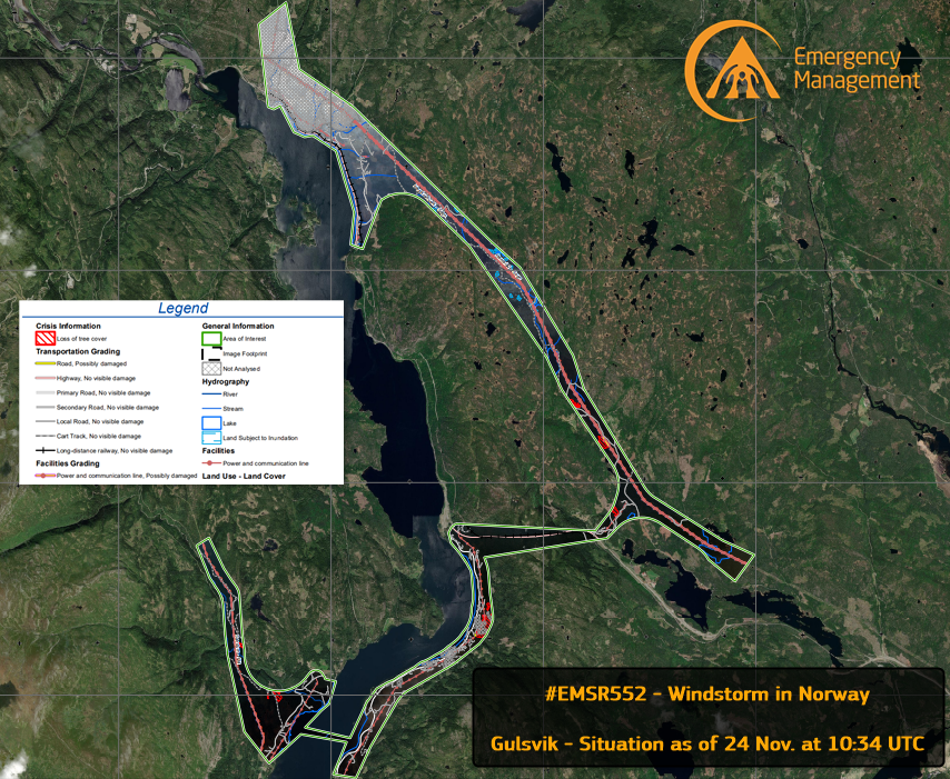 Our #RapidMappingTeam has delivered the Grading Product for the AoI of Gulsvik to identify the damages caused by the windstorm