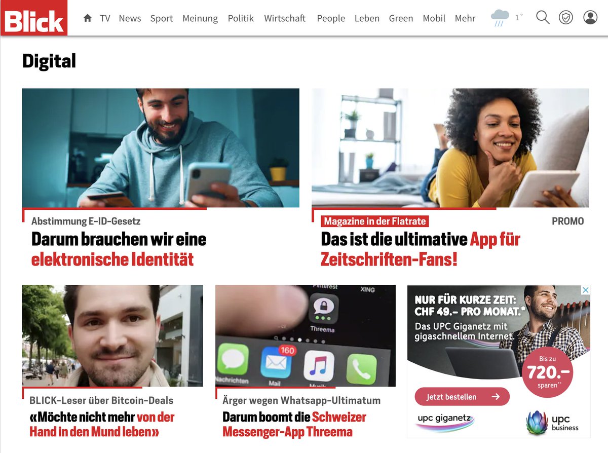 Wir haben nicht schlecht gestaunt, als wir @Blick gesehen haben: Eingebettet in redaktionelle Beiträge stach uns ein Artikel ins Auge mit dem Titel «Darum brauchen wir eine elektronische Identität». Im Text wird eine Lobeshymne auf die E-ID gesungen.https://www.blick.ch/digital/abstimmung-zum-e-id-gesetz-darum-brauchen-wir-eine-elektronische-identitaet-id16253275.html …