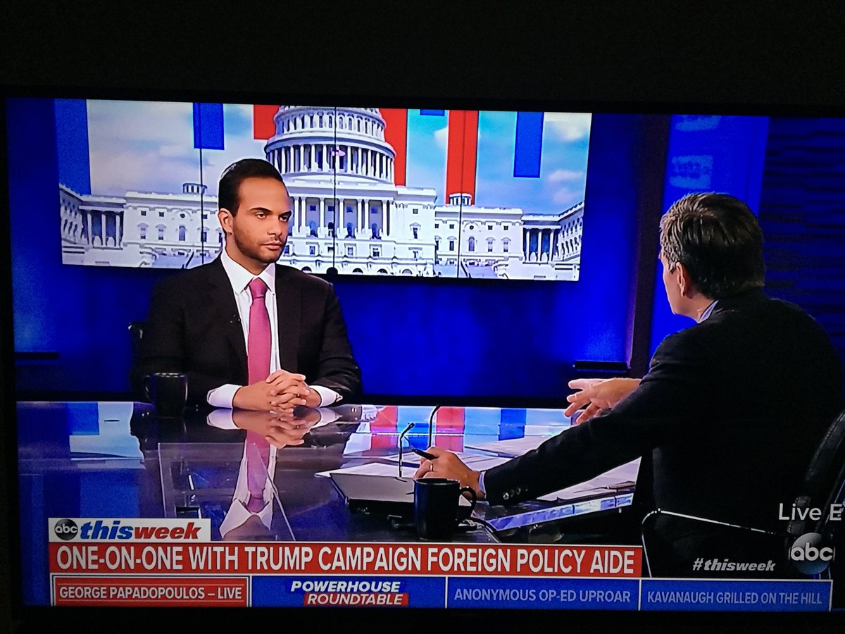 Stephanopoulos tells Papadopoulos he wasn’t scrupulous with the populace about his opulence but Papadopoulos cops to operants with a monopoly on scurrilous pomposity and on and on it goes for us in a monotonous pop-political ouroboros.https://twitter.com/TedDavisSAV/status/1038782192456015873 …