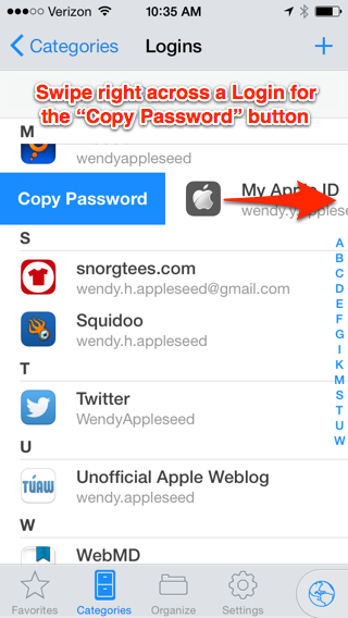 Swipe right across a Login to quickly copy a password on iOS. (See also: Settings > Security > Clear Clipboard)pic.twitter.com/96KFzm6U1u